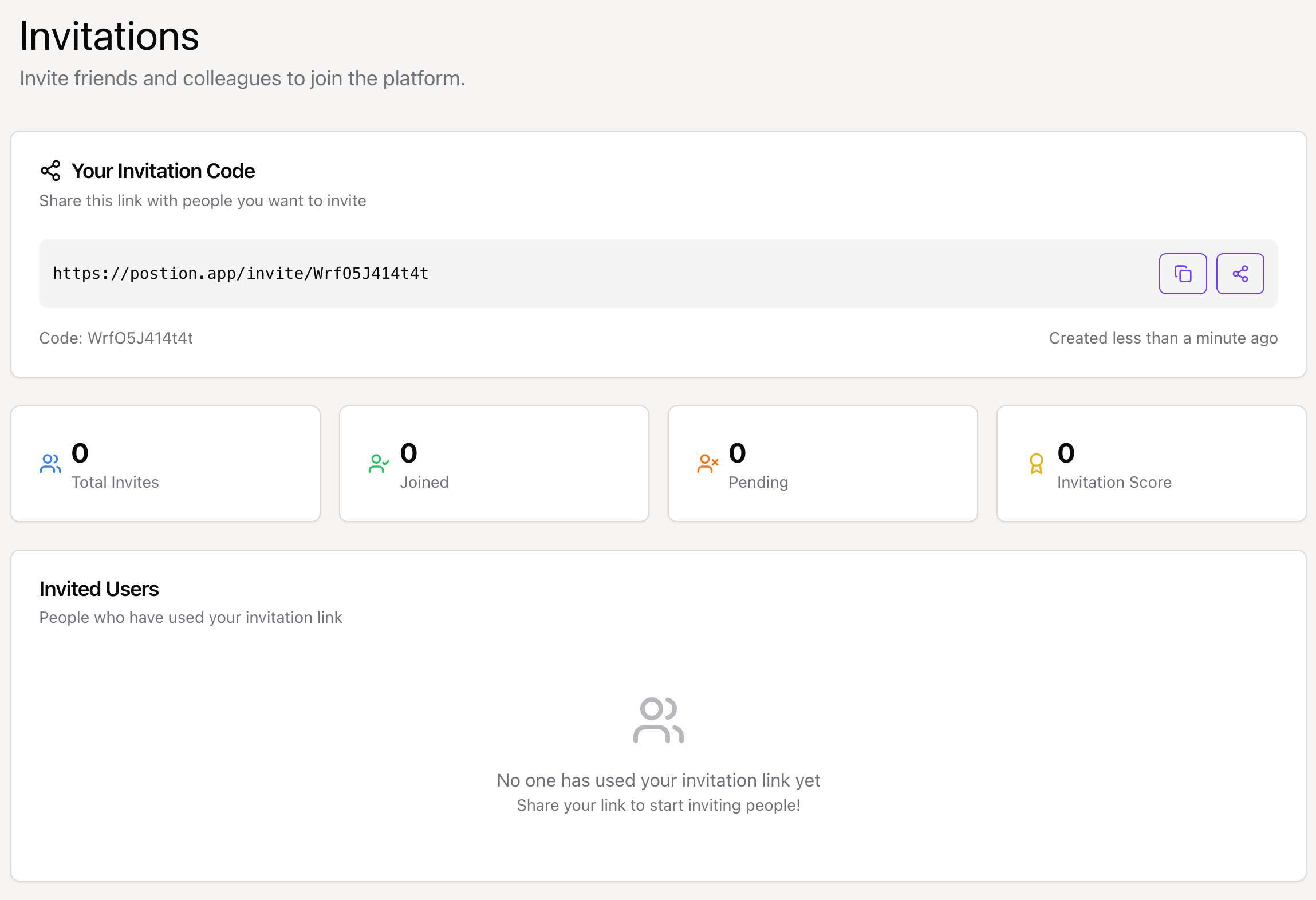 Invite your friends to join Postion and earn rewards. Learn how our invitation system works and how to track your referrals.